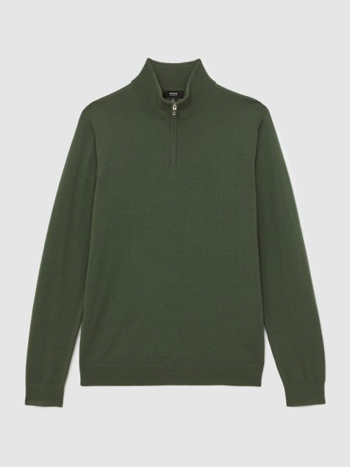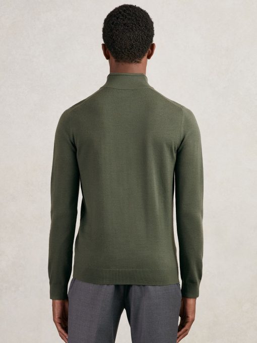 The Kale Green Blackhall jumper is a classic half-zip style, crafted from extra-fine merino wool. A finely ribbed hem and cuffs complete the look. 100% Merino wool Funnel neck Half zip Ribbed hem and cuffs The model is wearing a size M. Measurements of model: Height 6ft 2.5″ / 189cm.
