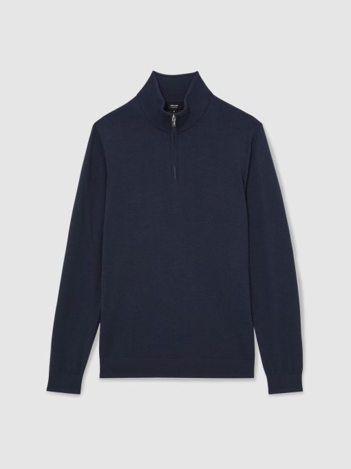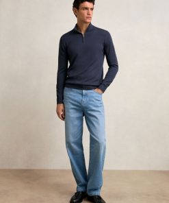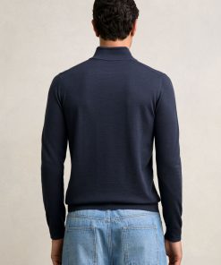 The Midnight Navy Blackhall jumper is a classic half-zip style, crafted from extra-fine merino wool. A finely ribbed hem and cuffs complete the look. 100% Merino wool Funnel neck Half zip Ribbed hem and cuffs The model is wearing a size M. Measurements of model: Height 6ft 3″ / 190.5cm.