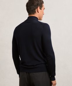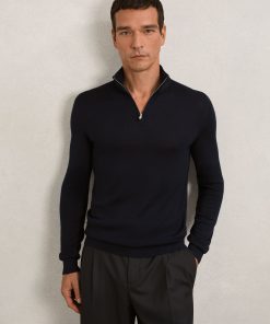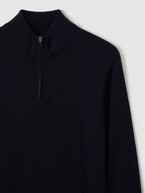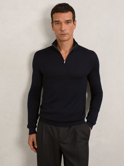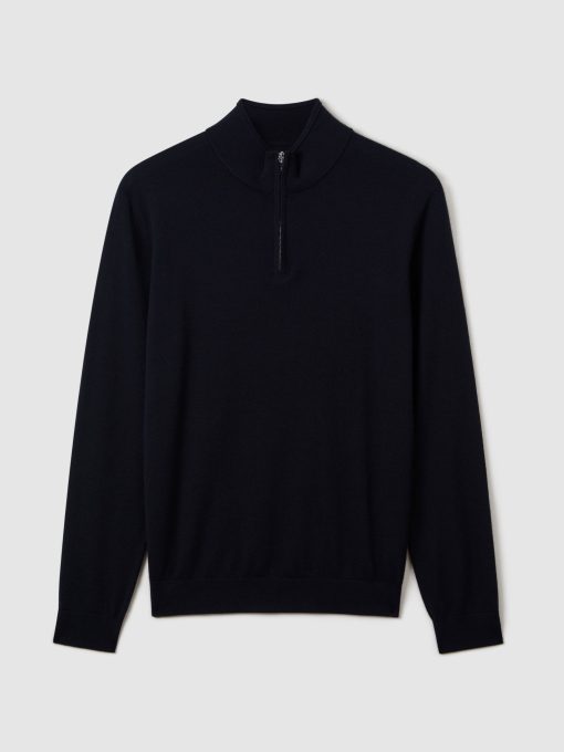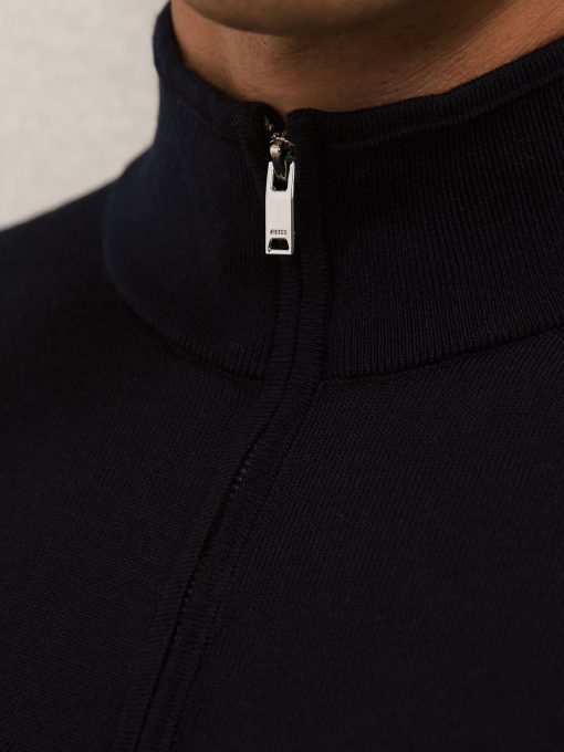 Reiss Men’s Merino Wool Half-zip Funnel Neck Jumper In Navy | Navy
