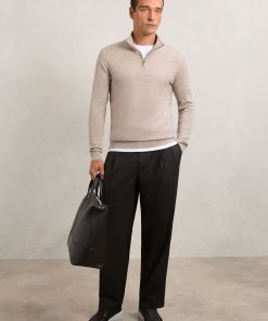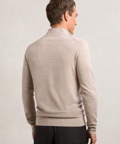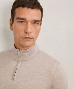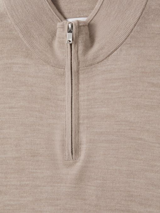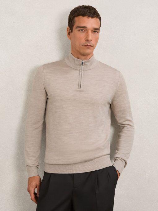 Reiss Men’s Merino Wool Half-zip Funnel Neck Jumper In Wheat Melange | Wheat Melange