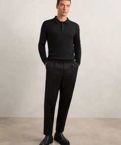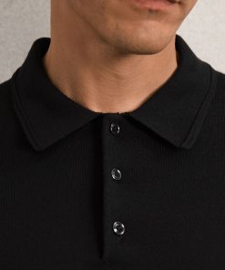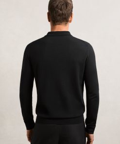 The black Trafford long-sleeve polo shirt meets luxe merino wool for lightweight, stretch-enhanced wear and a supremely soft handle. 100% merino wool Buttoned Polo neckline Long sleeves This garment is a part of the Reiss Phantom range, a sleek collection of all-black garments designed to celebrate the unwavering excellence of this classic shade. The model is wearing a size M. Measurements of model: Height 6ft 2.5″ / 189cm.