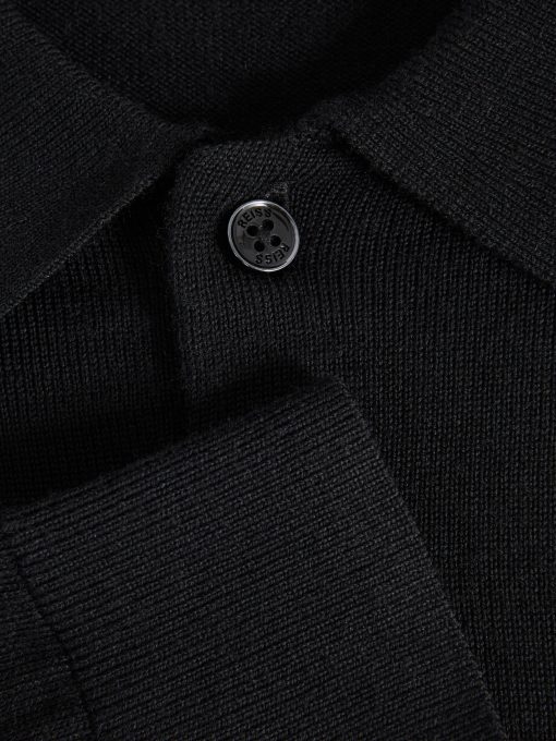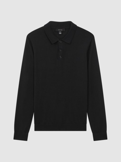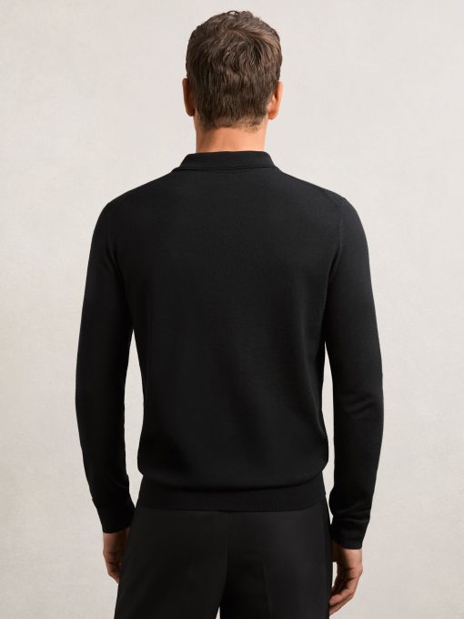 The black Trafford long-sleeve polo shirt meets luxe merino wool for lightweight, stretch-enhanced wear and a supremely soft handle. 100% merino wool Buttoned Polo neckline Long sleeves This garment is a part of the Reiss Phantom range, a sleek collection of all-black garments designed to celebrate the unwavering excellence of this classic shade. The model is wearing a size M. Measurements of model: Height 6ft 2.5″ / 189cm.