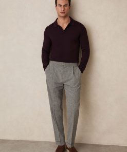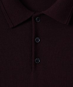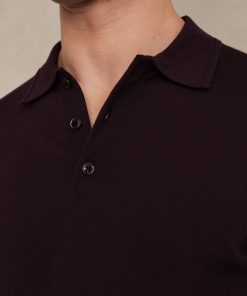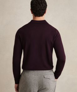 Reiss Men’s Merino Wool Long-sleeve Polo Shirt In Dark Bordeaux | Dark Bordeaux