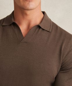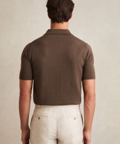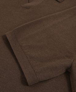 Merino wool brings a luxuriously soft feel to the Chocolate Brown Duchie polo shirt. A subtle mélange adds depth to the fine-knit fabric, while an open polo collar offers a relaxed touch. 100% Merino wool Mélange Open collar Short sleeves The model is wearing a size M. Measurements of model: Height 6ft 2' / 188cm.