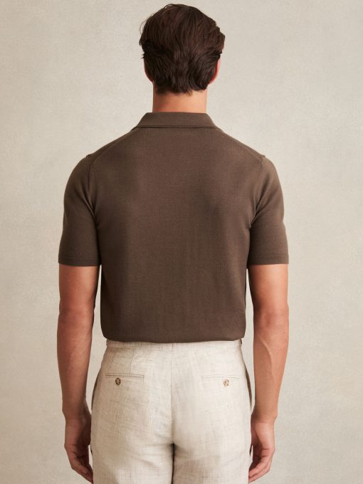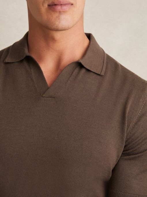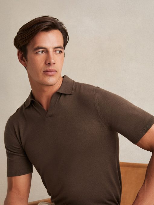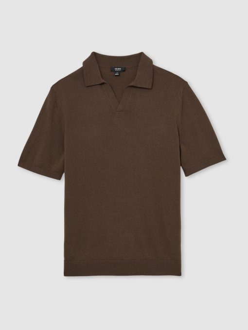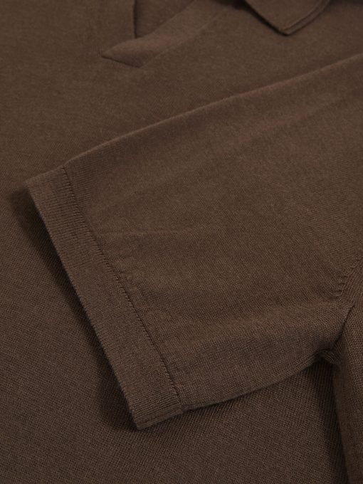 Merino wool brings a luxuriously soft feel to the Chocolate Brown Duchie polo shirt. A subtle mélange adds depth to the fine-knit fabric, while an open polo collar offers a relaxed touch. 100% Merino wool Mélange Open collar Short sleeves The model is wearing a size M. Measurements of model: Height 6ft 2' / 188cm.
