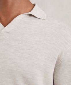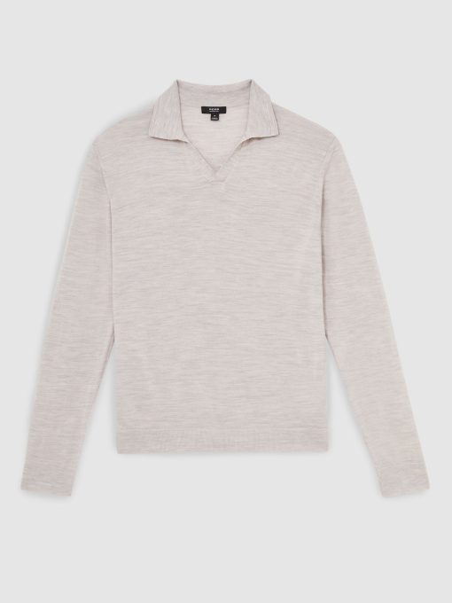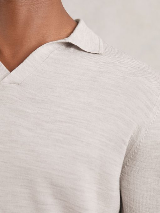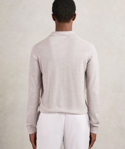 The Wicker Brown Melange Milburn polo shirt is rendered in extra-fine merino wool, offering a super-soft handle. An open collar, subtly enhanced by a ridged edge, adds a slightly casual touch. 100% merino wool Open polo collar Long sleeves Ribbed hem and cuffs The model is wearing a size M. Measurements of model: Height 6ft 2.5″ / 189cm.