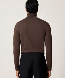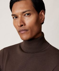 The Caine slim-fit roll-neck jumper is spun from merino wool for soft, lightweight wear. Tuck into chinos for casual cool, or pair yours with tailored trousers to refine the edit. 100% Merino wool Knitted construction Roll neckline Fine gauge Long sleeves Ribbed trims Regular fit Slim fit The model is wearing a size M. Measurements of model: 6ft 2″ / 188cm.