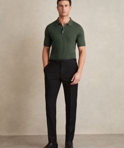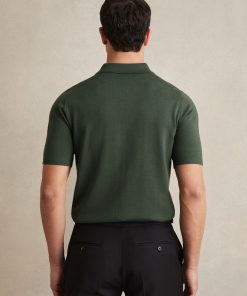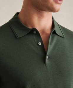 The Kale Green Manor is a classic short-sleeved polo style, crafted from extra-fine merino wool. A ribbed hem and cuffs complete the look. 100% merino wool Polo collar with button placket Short sleeves Ribbed hem and cuffs The model is wearing a size M. Measurements of model: 6ft 2″ / 188cm.