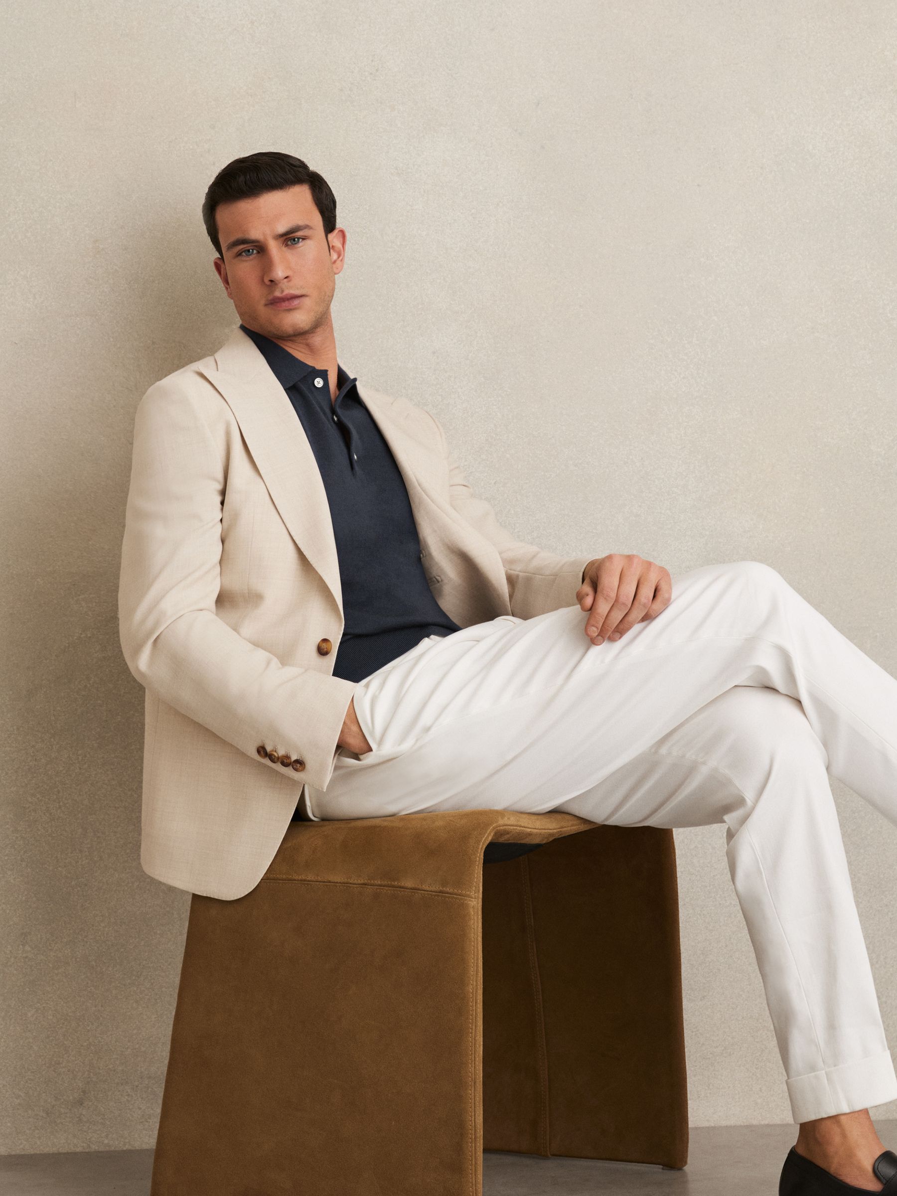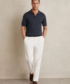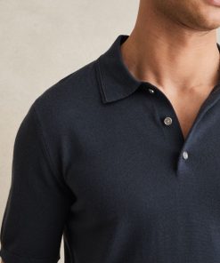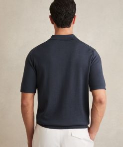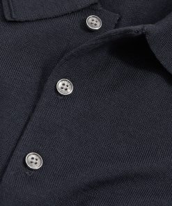 The Midnight Navy Manor is a classic short-sleeved polo style, crafted from extra-fine merino wool. A ribbed hem and cuffs complete the look. 100% merino wool Polo collar with button placket Short sleeves Ribbed hem and cuffs The model is wearing a size M. Measurements of model: 6ft 2″/ 188cm.