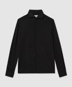 The Washed Black Bobby shirt reimagines formal dressing for the modern age. Crafted from a supremely soft, breathable modal blend, this style is fitted with a cutaway collar and tailored in a regular fit. Modal blend Cutaway collar Button-front closure Long sleeves The model is wearing a size M. Measurements of model: 6ft 2″ / 187cm.
