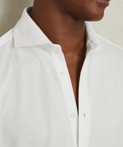 The White Bobby shirt reimagines formal dressing for the modern age. Crafted from a supremely soft, breathable modal blend, this style is fitted with a cutaway collar and tailored in a regular fit. Modal blend Cutaway collar Button-front closure Long sleeves The model is wearing a size M. Measurements of model: Height 6ft 2.5″ / 189cm.