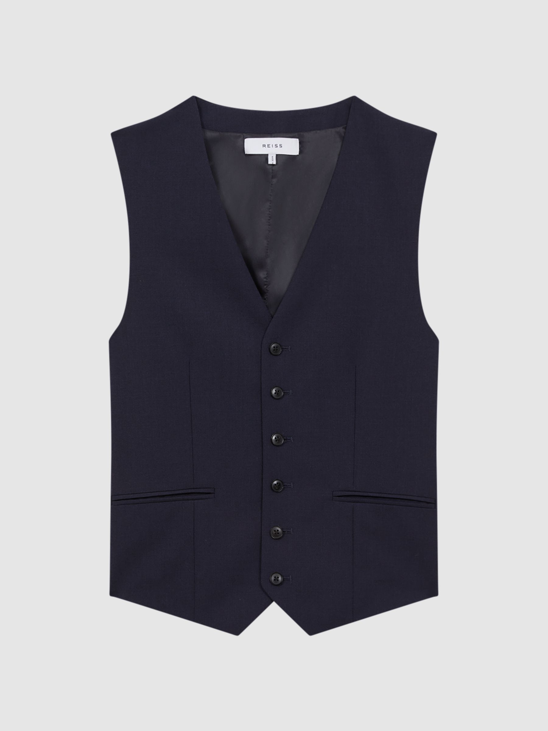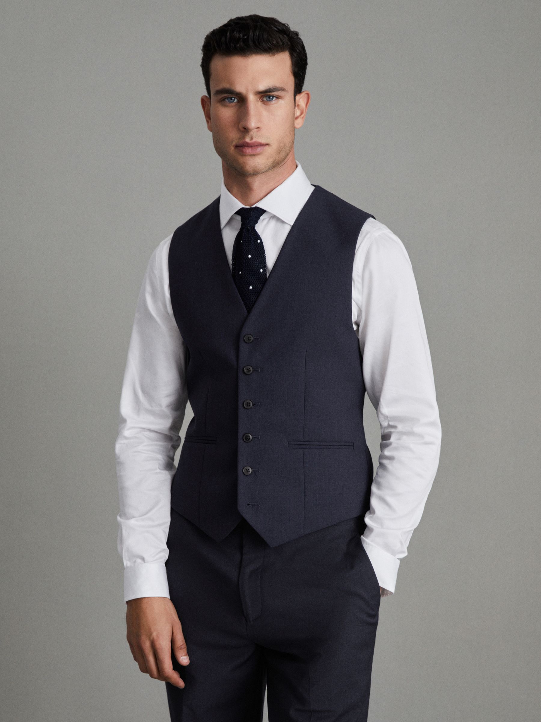 Reiss Men’s Modern Fit Wool Blend Waistcoat In Navy | Navy