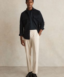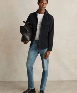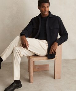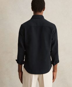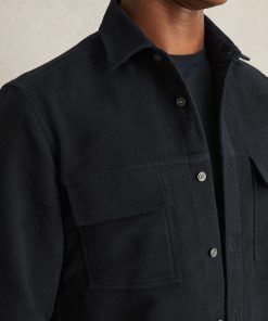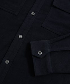 Crafted from soft moleskin cotton, the Navy Camber overshirt offers both warmth and style. With utilitarian chest flap pockets, this versatile piece can be worn on its own or layered over a basic T-Shirt. Moleskin cotton Chest flap pockets Button cuffs Front button placket The model is wearing a size M. Measurements of model: Height 6ft 2.5″ / 189cm.