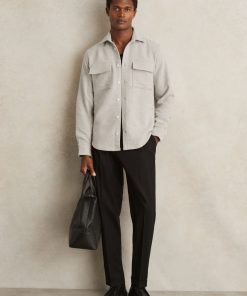 Crafted from soft moleskine cotton, the Soft Grey Melange Camber overshirt offers both warmth and style. With utilitarian chest flap pockets, this versatile piece can be worn on its own or layered over a basic T-Shirt. Moleskin cotton Mélange Chest flap pockets Button cuffs Front button placket The model is wearing a size M. Measurements of model: Height 6ft 2.5″ / 189cm.