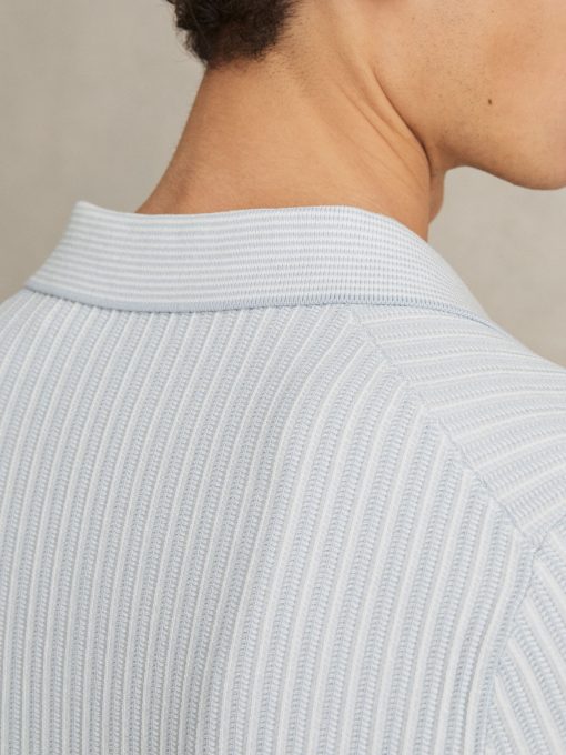 Textured stripes lend the Lancaster polo shirt a refined, tactile finish, while the open collar adds a relaxed twist to this classic style. It is slim-fitting and finished with short sleeves. Textured knit Stripe pattern Open polo collar Short sleeves Slim fit The model is wearing a size M. Measurements of model: 6ft 2.5″ / 189cm.