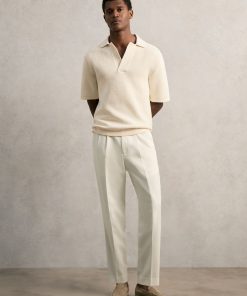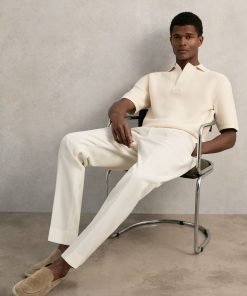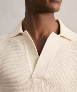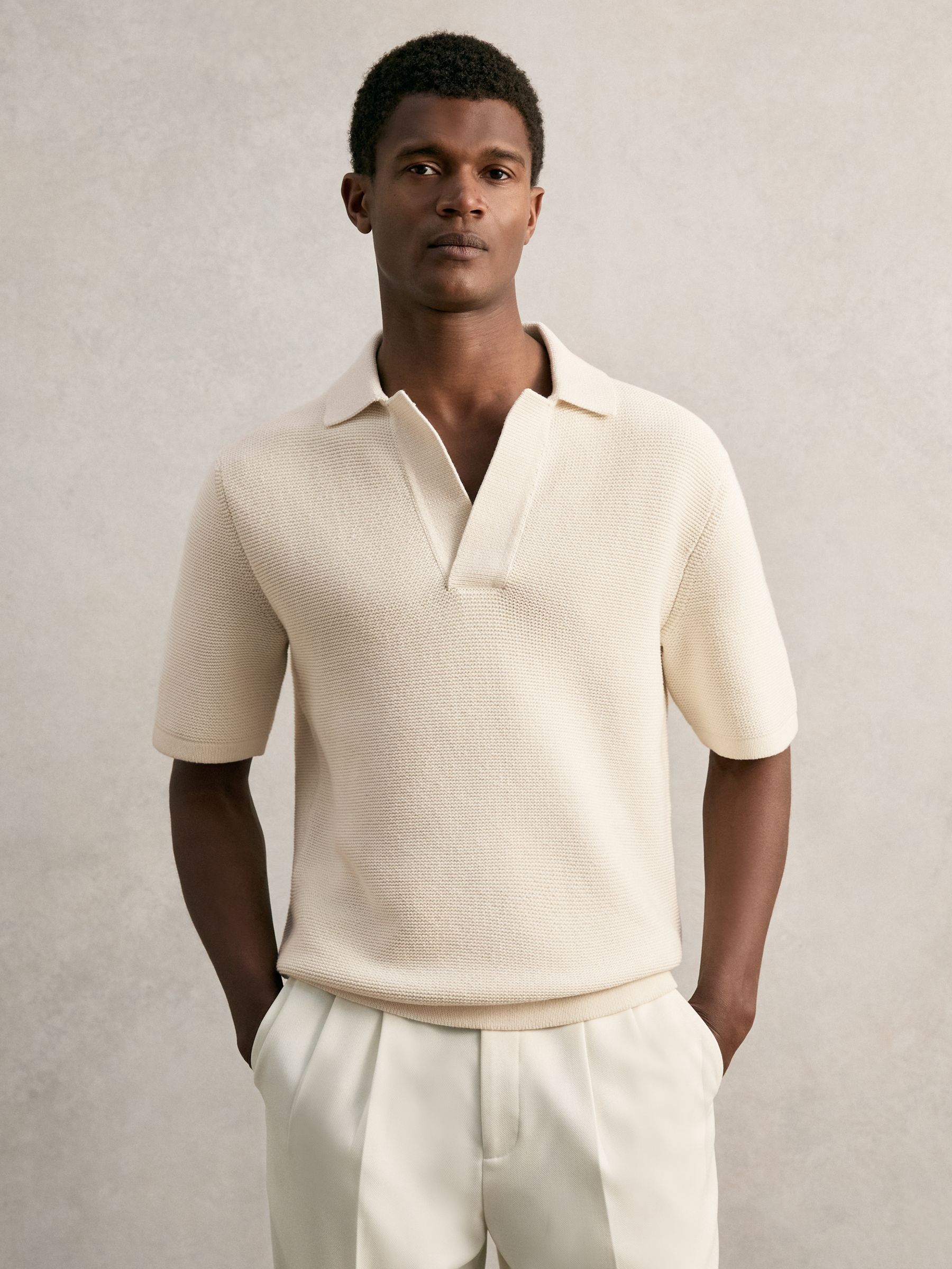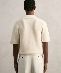 The Langton polo shirt is knitted from a cotton blend with a textured finish that adds subtle interest. Cut to an oversized fit with an open collar, it strikes the perfect balance of ease and refinement. Cotton blend Textured knit Oversized Open polo collar The model is wearing a size M. Measurements of model: Height 6ft 2.5″ / 189cm.
