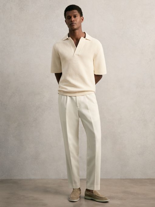 The Langton polo shirt is knitted from a cotton blend with a textured finish that adds subtle interest. Cut to an oversized fit with an open collar, it strikes the perfect balance of ease and refinement. Cotton blend Textured knit Oversized Open polo collar The model is wearing a size M. Measurements of model: Height 6ft 2.5″ / 189cm.