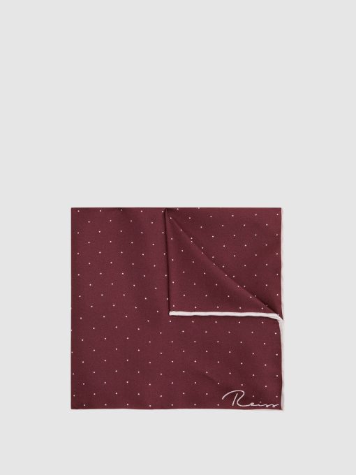 Reiss Men’s Polka Dot Silk Pocket Square In Burgundy | Burgundy