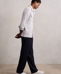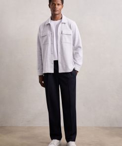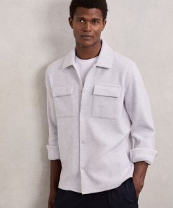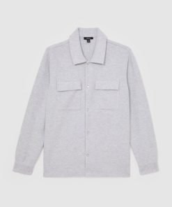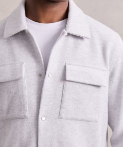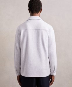 Reiss Men’s Press-stud Jersey Shirt With Cotton In Grey Marl | Grey Marl