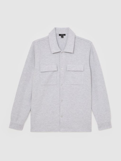 Reiss Men’s Press-stud Jersey Shirt With Cotton In Grey Marl | Grey Marl