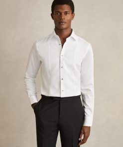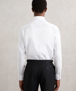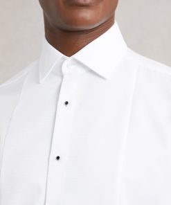 The White Marcel shirt is tailored for special occasions, crafted from 100% cotton with a subtly textured Marcella bib for a refined touch. Cut in a regular fit, it features a cutaway collar and glossy black buttons for a sophisticated finish. 100% cotton Regular fit Marcella bib Cutaway collar Button cuffs Contrasting front buttons