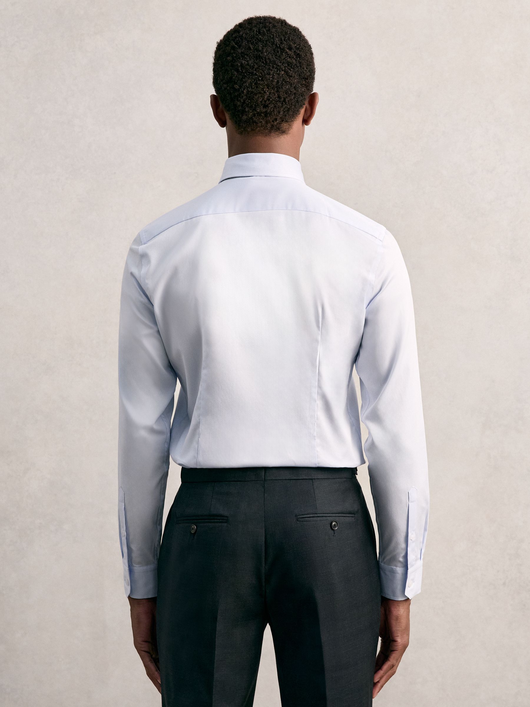 The Mid Blue Remote shirt is crafted from 100% cotton satin, offering a subtle sheen that elevates its elegant appeal. Cut for a regular fit, it has a modern cutaway collar and a French button placket for a seamless finish. Cotton satin Regular fit Cutaway collar Long sleeves Button cuffs French button placket The model is wearing a size M. Measurements of model: Height 6ft 2.5 / 189cm.