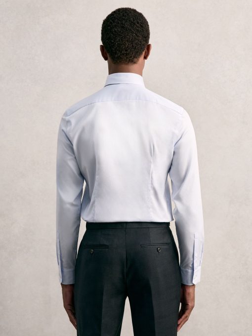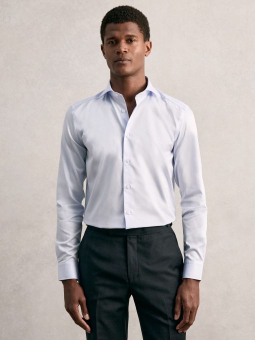 The Mid Blue Remote shirt is crafted from 100% cotton satin, offering a subtle sheen that elevates its elegant appeal. Cut for a regular fit, it has a modern cutaway collar and a French button placket for a seamless finish. Cotton satin Regular fit Cutaway collar Long sleeves Button cuffs French button placket The model is wearing a size M. Measurements of model: Height 6ft 2.5 / 189cm.