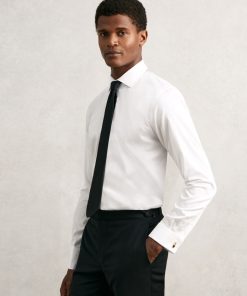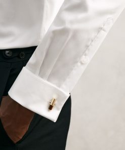 The White Remote shirt is crafted from 100% cotton satin for a subtle sheen and refined finish. Cut to a slim fit, it features a modern cutaway collar and double cuffs designed for cufflinks – ideal for formal occasions. 100% Cotton satin Slim fit Cutaway collar Double cuffs French button placket The model is wearing a size M. Measurements of model: Height 6ft 2.5″ / 189cm.