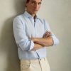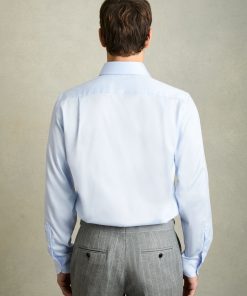 Crafted from cotton-Tencel with a hint of stretch, the soft blue Bishopsgate shirt is the perfect addition to tailored looks. A spread collar adds refined structure to the neckline. Cotton-Tencel with stretch Spread collar Buttoned cuffs Front button placket Regular fit The model is wearing a size M. Measurements of model: 6ft 2″ / 187cm.