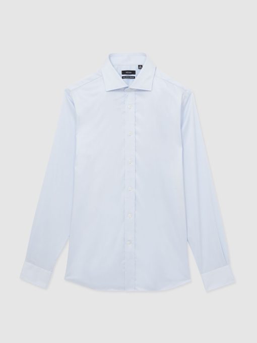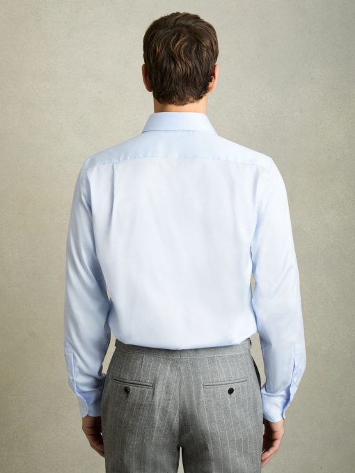 Crafted from cotton-Tencel with a hint of stretch, the soft blue Bishopsgate shirt is the perfect addition to tailored looks. A spread collar adds refined structure to the neckline. Cotton-Tencel with stretch Spread collar Buttoned cuffs Front button placket Regular fit The model is wearing a size M. Measurements of model: 6ft 2″ / 187cm.