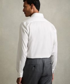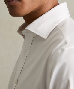 Crafted from cotton-Tencel with a hint of stretch, the white Bishopsgate shirt is the perfect addition to tailored looks. A spread collar adds refined structure to the neckline. Cotton-Tencel with stretch Spread collar Buttoned cuffs Front button placket Regular fit The model is wearing a size M. Measurements of model: 6ft 2″ / 189cm.