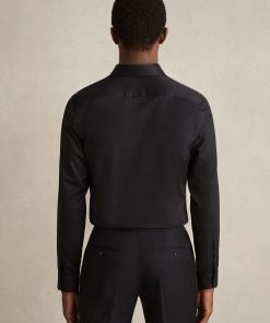 Crafted from two-fold cotton, the Black Storm shirt offers exceptional durability and a supremely soft feel. A neat cutaway collar and French button-through placket enhance its refined look, while the fabric's subtle sheen adds a touch of sophistication. 100% cotton twill Regular fit Cutaway collar Long sleeves Buttoned cuffs French button placket The model is wearing a size M. Measurements of model: Height 6ft 2.5″ / 189cm.