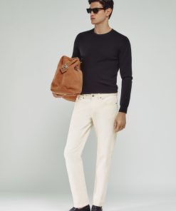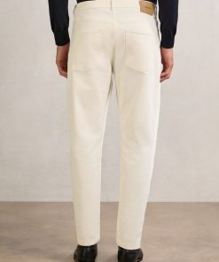 A relaxed fit and slightly cropped length give the white Rathbone jeans in white a modern feel. Feathering at the thigh and lightly worn edges create a well-loved appearance. Cotton denim with stretch Relaxed fit Logo patch to reverse Five pockets Cropped Button and zip fastening The model is wearing a size 32. Description: Measurements of model: 6ft 2″ / 189cm. Regular inside leg length 28.5″ / 73cm.