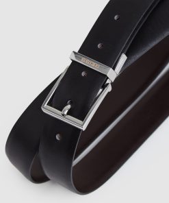 Crafted from smooth leather, the Reign belt offers versatile style with black and brown reversible sides. Interchangeable gold- and silver-tone buckles feature subtle branding for a signature touch. 100% leather Reversible design Interchangeable buckles Presented in a Reiss-branded gift box Width 3cm