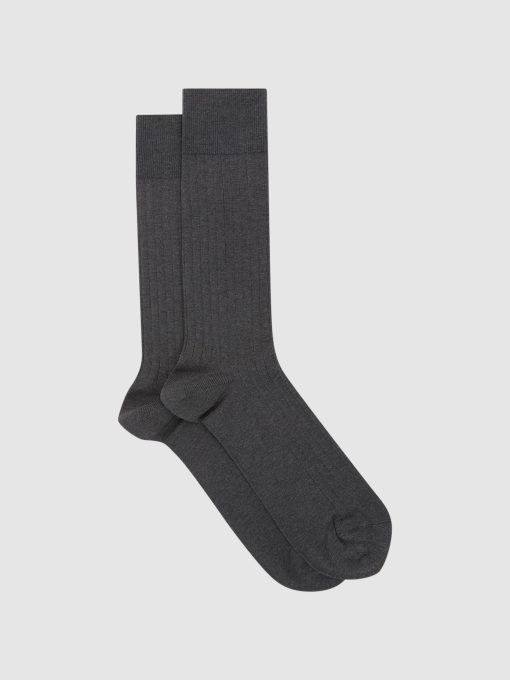 Reiss Men’s Ribbed Socks In Charcoal | Charcoal