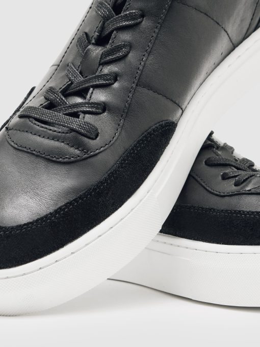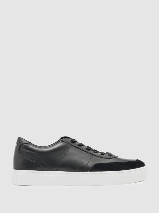 Reiss Men’s Shoes Bonded-leather Low-top Trainers In Black | Black