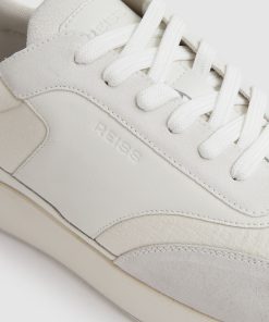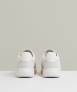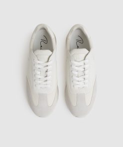 Emmett is a lightweight pair of white lace-up running trainers with a thick sole and a streamlined colour-block design. Suede, bonded leather, and fabric details feature throughout. Bonded leather-suede construction Colour-block design Debossed logos Lace-up style