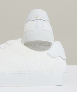 The White Finley trainers are crafted with a knitted upper for a lightweight, breathable feel. The low-top style is complemented by a branded leather heel counter and a contrasting rubber sole, offering both comfort and a modern look. Knitted upper Low-top style Branded leather heel counter Rubber sole Lace-up fastening