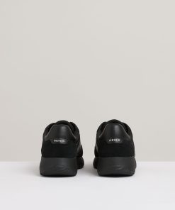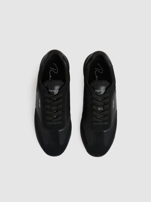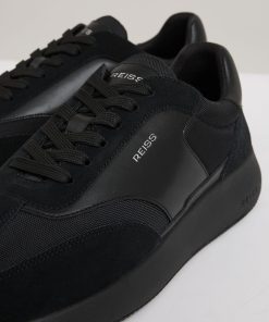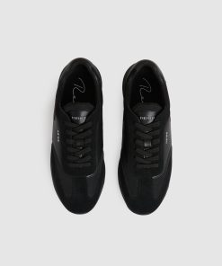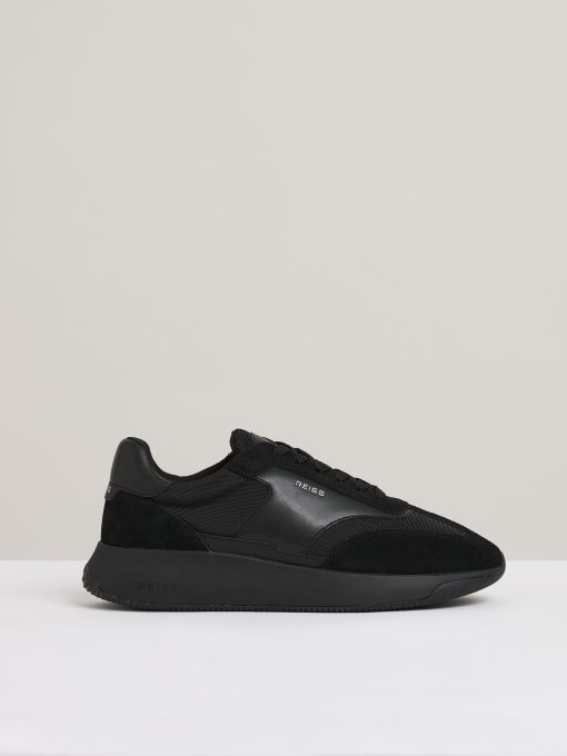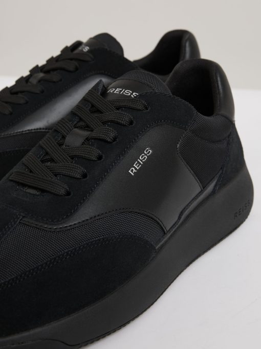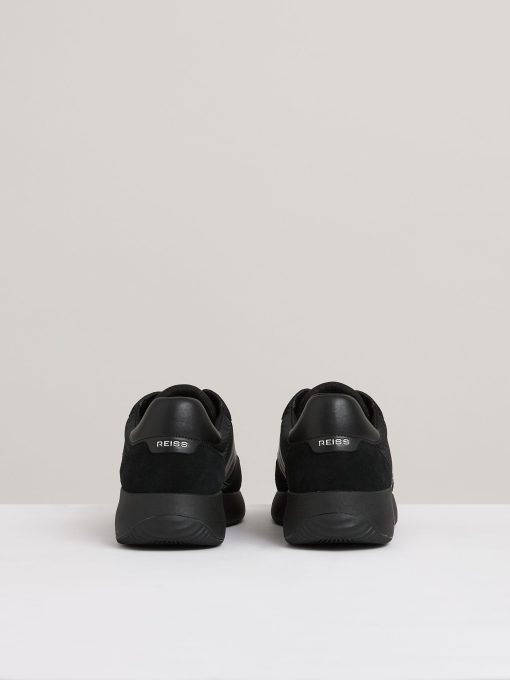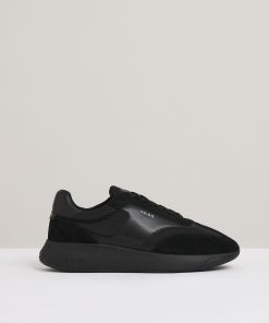 The All Black Emmett is a lightweight pair of lace-up running trainers with a thick sole and a streamlined color-block design. Suede, leather, and mesh details feature throughout. Leather-suede construction Colourblock design Lace-up style