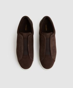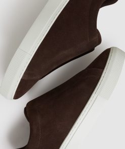 The Chocolate Brown Emil trainers are crafted from supple suede with elasticated panels for easy slip-on styling. A branded leather heel counter and contrasting rubber sole complete the look with a modern, minimalist finish. 100% suede Slip-on Elasticated panel Branded leather heel counter Contrasting rubber sole