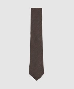 Reiss Men’s Silk Blend Textured Tie In Chocolate Brown | Chocolate Brown