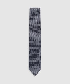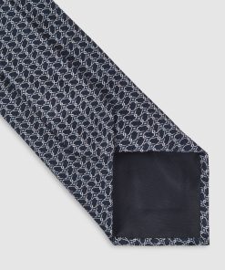 Reiss Men’s Silk Geometric-chain Print Tie In Navy | Navy