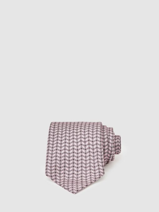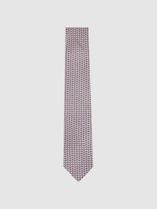 Reiss Men’s Silk Geometric-chain Print Tie In Soft Pink | Soft Pink