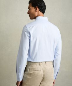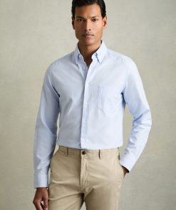 True to an Oxford shirt style, the soft blue Greenwich long-sleeve is crafted with two-ply cotton for durability and structure. Its slim fit shape is fastened with a button-front closure and a button-down collar. Two-ply cotton Soft-wash finish Button-down collar Patch pocket Long sleeves Buttoned cuffs Slim fit The model is wearing a size M. Measurements of model: 6ft 2″ / 188cm.
