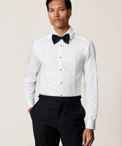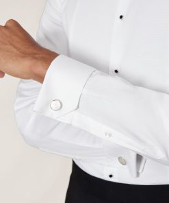 The White Marcel shirt is tailored for formal occasions, crafted from 100% cotton with a subtly textured marcella bib for a refined finish. Its slim fit creates a sharp silhouette, while double cuffs allow for personalised styling with cufflinks. A cutaway collar and glossy black dress studs lend a modern edge to this timeless eveningwear staple. 100% Cotton Slim fit Marcella bib Cutaway collar Double cuffs Dress-stud closure The model is wearing a size M. Measurements of model: Height 6ft 2.5″ / 189cm.
