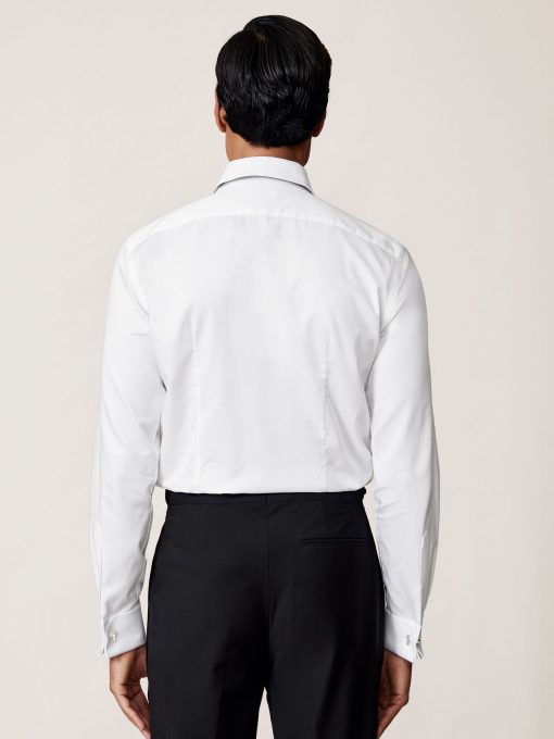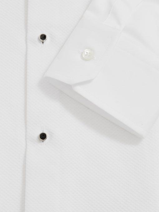 The White Marcel shirt is tailored for formal occasions, crafted from 100% cotton with a subtly textured marcella bib for a refined finish. Its slim fit creates a sharp silhouette, while double cuffs allow for personalised styling with cufflinks. A cutaway collar and glossy black dress studs lend a modern edge to this timeless eveningwear staple. 100% Cotton Slim fit Marcella bib Cutaway collar Double cuffs Dress-stud closure The model is wearing a size M. Measurements of model: Height 6ft 2.5″ / 189cm.