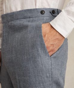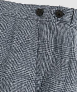 Expertly crafted from premium lightweight linen in a classic Prince of Wales check, the Reef trousers are a perfect choice for refined summer occasions. They’re tailored to a slim silhouette, with buttoned side adjusters for a customisable fit. 100% linen Slim fit Prince of Wales check Side adjusters Hook-and-bar with zip The model is wearing a size 32. Measurements of model: 6ft 2″ / 187cm. Regular inside leg length 31.5″ / 80cm.