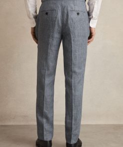 Reiss Men’s Slim Fit Linen Check Suit Trousers In Soft Blue | Soft Blue