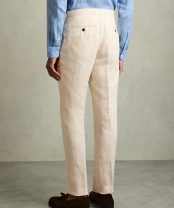 Reiss Men’s Slim Fit Linen Trousers In Stone | Stone