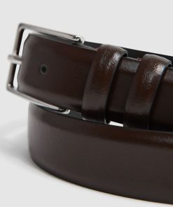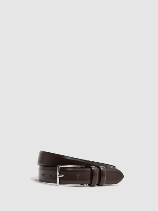 Reiss Men’s Smooth Leather Belt In Chocolate | Chocolate
